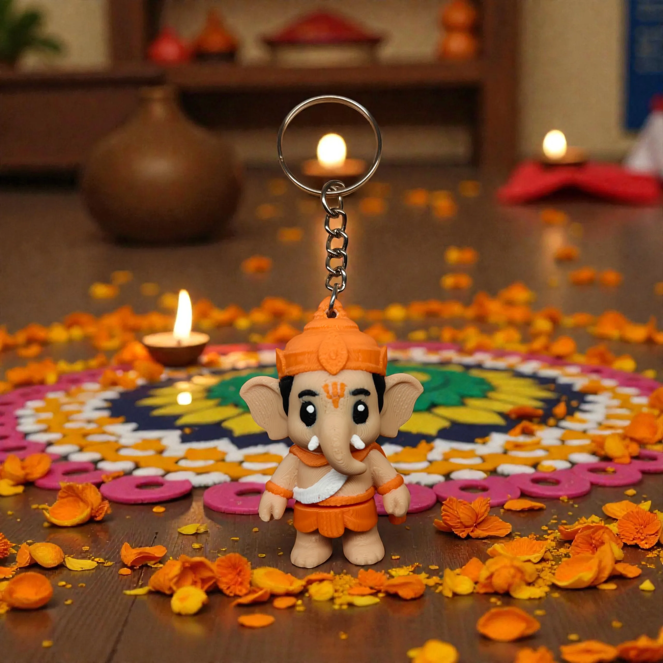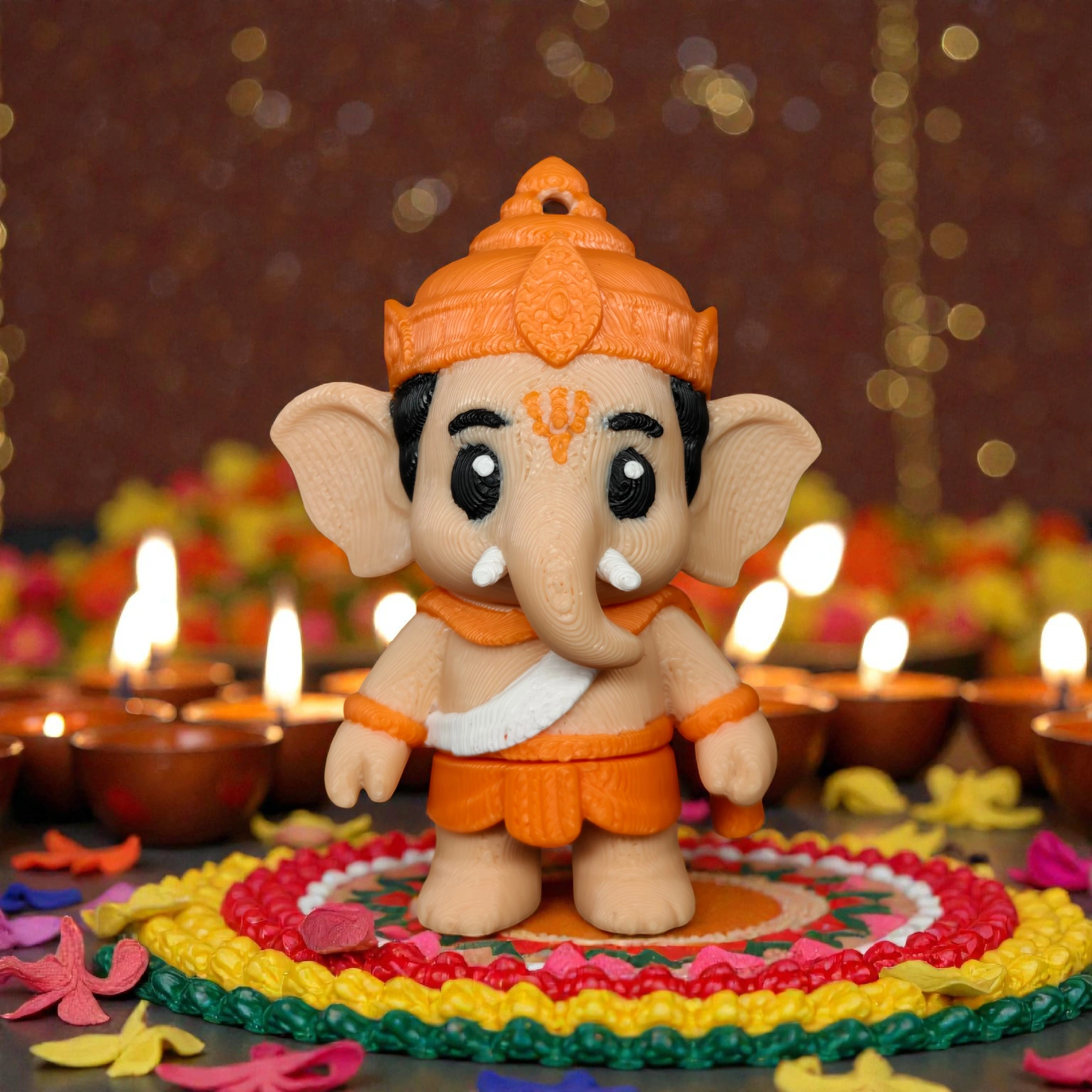 Cute 3D printed flexi keychain inspired by Lord Ganesha, designed with a charming cartoon-style look
