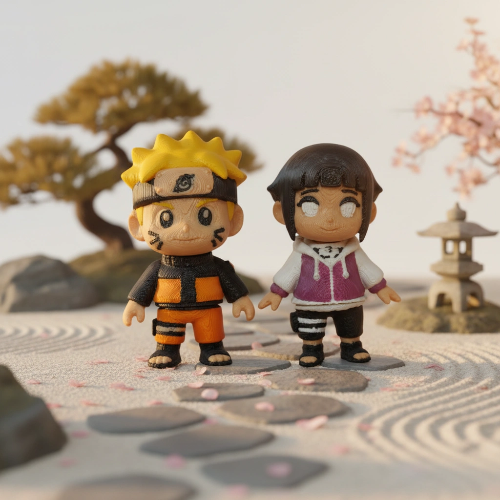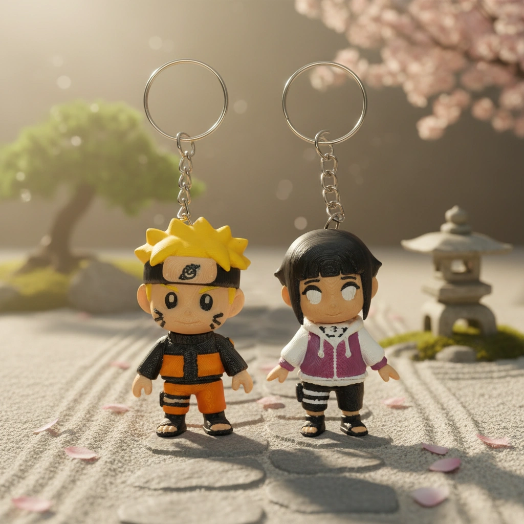 High-quality 3D printed flexi keychain featuring Naruto and Hinata in a cute chibi-style design.